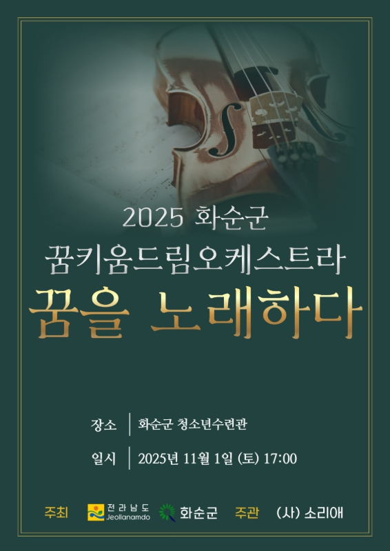 ‘화순군 꿈키움 드림오케스트라’는 취약계층 아동을 대상으로 클래식 악기 교육을 지원하는 사업이다. 지난 2월, 사단법인 소리애가 위탁 공모에 선정되어 전문 강사진의 지도로 정기적인 개인·합주 수업을 진행해 왔다.