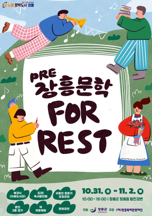 10월 31일 장흥읍 탐진강변에서 막을 올리는 ‘PRE-장흥 문학 포, 레스트’는 문학과 음악, 체험이 어우러진 시민 참여형 축제이다.