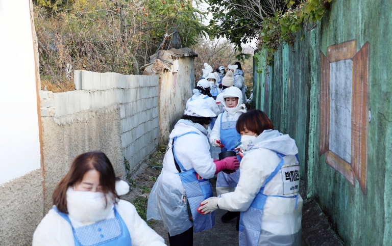 이날 '엔돌핀' 회원 40여 명은 추운 날씨 속에서도 연탄을 나르며 구슬땀을 흘렸고, 이웃들에게 따뜻한 응원의 메시지를 전했다.