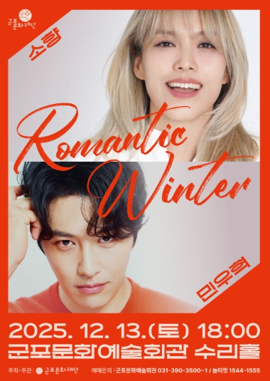 군포문화재단 전형주 대표이사는 “군포 시민 여러분께 따뜻한 연말 분위기와 행복함을 선사하고자 이번 공연을 준비했다”며 “소향과 민우혁이 들려주는 감동적인 무대를 통해 올 한해를 아름답게 마무리하시길 바란다”고 전했다.