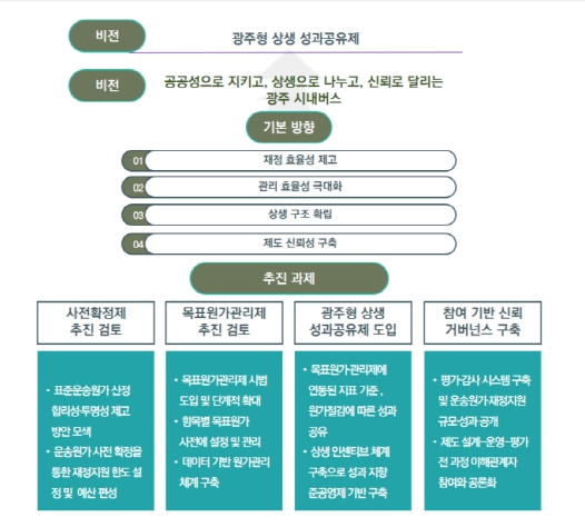 또한 △도시철도-시내버스 간 연계 네트워크 구축 △도시철도 개통 후 적정 버스 대수 산정 △마을버스·광역버스 등 기능체계 재정립 △광주형 요금 조정 정례제 도입 △버스전용차선 운영 개선 등 발전방안도 제시됐다.