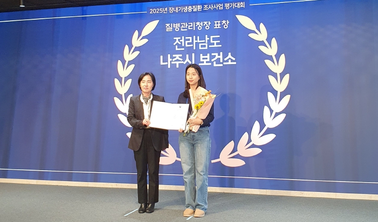 나주시보건소 질병관리과는 지난 11일 질병관리청이 주최한 ‘2025년 장내기생충 조사사업 평가대회’에서 우수 기관으로 선정돼 질병관리청장 표창을 받았다고 17일 밝혔다.