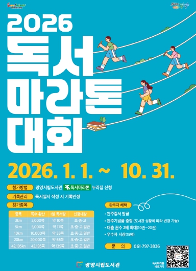 김현숙 도서관과장은 “2026년 독서마라톤 대회는 참여 이벤트를 확대하고 참가자 관리와 운영 전반을 보다 체계화할 예정”이라며 “시민들이 일상 속에서 자연스럽게 독서 습관을 형성하는 계기가 되길 기대한다”고 말했다.