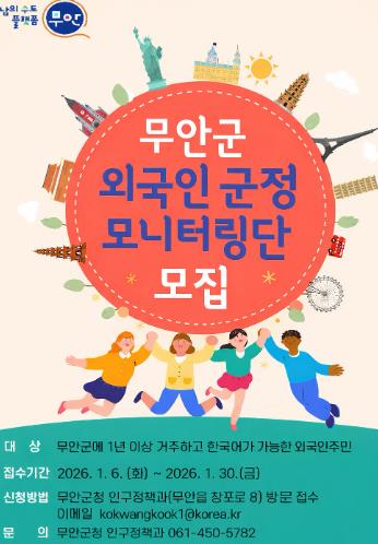 한승헌 인구정책과장은 “지난해 외국인주민 군정 모니터링단 운영은 외국인주민이 정책 수혜자를 넘어 군정의 동반자로 참여하는 의미 있는 출발이었다”며 “2026년에는 참여의 폭과 소통을 더욱 확대해 외국인주민과 군민이 함께 성장하는 무안을 만들어 가겠다” 말했다.