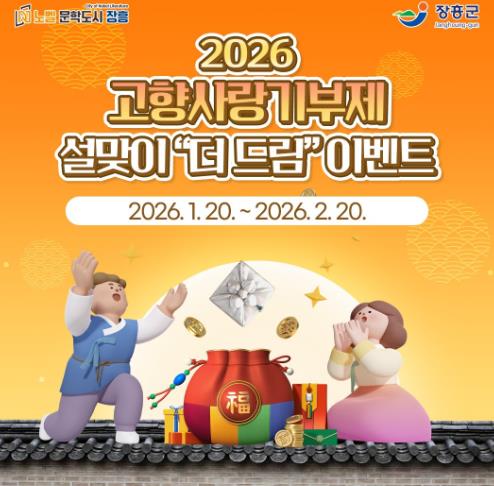 장흥군 관계자는 “설 명절을 맞아 고향을 응원하는 따뜻한 마음을 기부로 표현할 수 있도록 이번 이벤트를 마련했다”며 “앞으로도 고향사랑기부제가 지역 발전과 기부자 만족을 함께 높일 수 있도록 다양한 홍보와 혜택을 지속적으로 추진해 나가겠다”고 말했다.