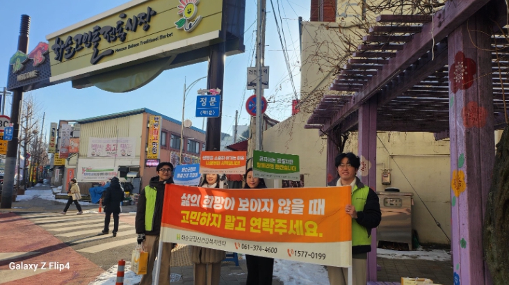 이날 캠페인에서는 겨울철 한파로 심신이 지친 상인과 방문객들의 마음 건강을 살피고, 위기 상황 시 도움을 받을 수 있는 24시간 정신건강 상담 전화 등 지원체계를 알리기 위해 마련됐다.