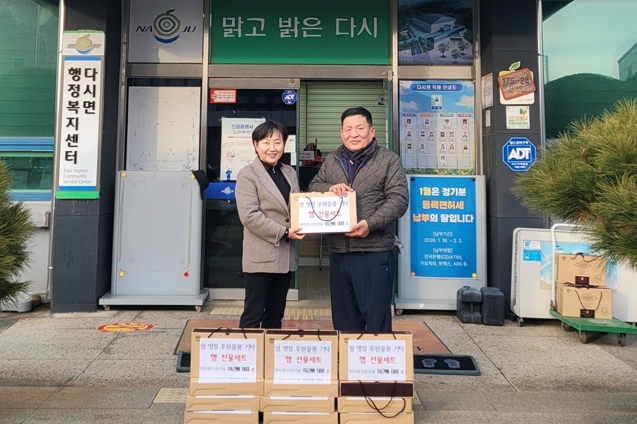 박은희 다시면장은 “경기 불황 속에서도 매년 잊지 않고 고향을 향해 따뜻한 손길을 내어주시는 이근배 대표님께 깊은 감사를 드린다”며 “기탁하신 소중한 물품에 담긴 따뜻한 진심까지 이웃들에게 잘 전달하겠다”고 답했다.