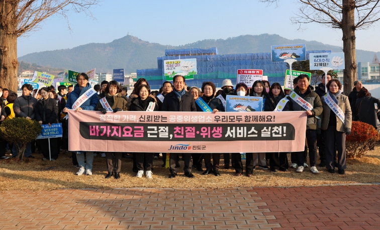 이번 운동(캠페인)은 진도군과 위생업소 영업주, 소비자식품위생감시원이 함께 참여해 ▲바가지요금 근절 ▲친절한 손님맞이 실천 ▲위생 수칙 준수 ▲업소 위생 관리 강화 ▲식중독 예방 수칙 등을 집중적으로 홍보했다.