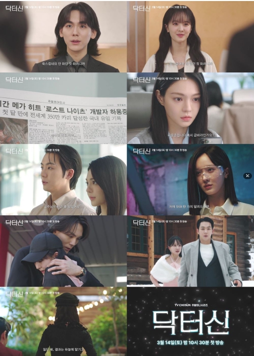 한편 TV CHOSUN 새 주말미니시리즈 ‘닥터신’은 불의의 사고로 혼수상태에 빠진 톱스타와 그녀를 사랑했던 남자, 그녀를 사랑하고 있는 남자들의 기이한 로맨스를 담는다. 오는 3월 14일(토) 밤 10시 30분 TV CHOSUN과 쿠팡플레이에서 동시 공개된다.