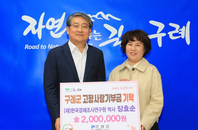이날 구례군청에서 열린 기탁식에 참석한 장효순 박사는 김순호 군수에게 기부금을 전달하면서 “구례와 연을 맺어 오며 지역을 위해 도움이 될 만한 일을 고민해왔다”며 “이번 기부로 구례에 보탬이 될 수 있어 매우 기쁘다”고 말했다.
