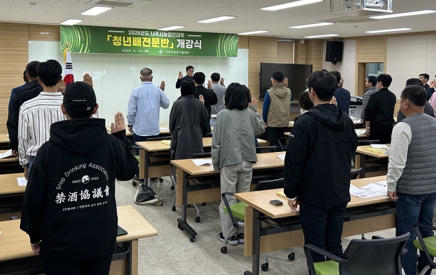 16일 나주시에 따르면 지난 14일 나주시농업기술센터 농업인교육관에서 ‘2026년도 나주시농업인대학 청년배전문반’ 개강식을 개최했다.