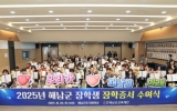 문화 박종수 기자2025. 10.30[더조은뉴스]재단법인 해남군교육재단(이사장 명현관)은 지난 28일 해남군청 대회의실에서 2025년 해남군 장학생 장학증서 수여식을 가졌다. 수여식에서는 2025년 각 분야 해남군 장학생으로 선발된 우수학생 474명에게 총 4억 5,500만원의 장학금을 지원한다. 이날 수여식에는 장학생 대표 78명과 관계자들이 참석하여 자리를 빛냈다. 식전 공연으로 예체능 분야 장학생으로 선발된 한국무용창작팀과 태권도 시범팀이 수준 높은 공연을 선보이기도 했다. 2025년도 장학금 대상자는 성적우수 장학생 75명, 기능영재 장학생 30명, 희망…