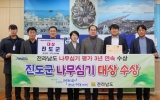 진도 박종수 기자2025. 12.15[더조은뉴스]진도군이 전라남도가 주관한 ‘2025년 전라남도 나무심기 평가’에서 ‘대상’을 받았다. 이번 평가에서는 전남의 22개 시군을 대상으로 ▲나무심기 실적 ▲홍보 활동 ▲신규 시책 발굴 ▲예산 활용 등 전반적인 추진 과정을 종합적으로 심사했다. 진도군은 공원관리사업소를 중심으로 녹지 공간 조성 사업을 체계적으로 추진하며 높은 평가를 받았다. 특히, 최근 3년 동안 ‘나무심기 평가’에서 ▲2023년 우수상 ▲2024년 최우수상▲2025년에는 영예의 대상을 받으며, 3년 연속 수상과 더불어 평가 등급이 꾸준히 상승하는 의미…