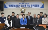 박종수 기자2025.11.13 16:06[더조은뉴스]광주 북구의회 정달성 의원(용봉·매곡·삼각·일곡동/더불어민주당)이 13일 이숙희 의원과 함께 ‘장애인친화도시 조성을 위한 정책간담회’를 개최했다. 이번 간담회는 북구 장애인친화도시 조성의 현주소를 점검…