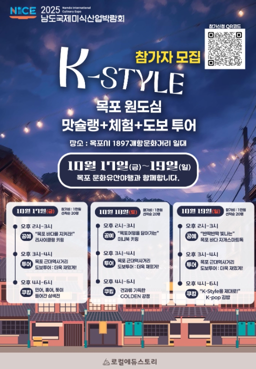 홍양현 남도국제미식산업박람회 사무국장은 “원도심 K-Style 박람회는 목포의 근대문화유산과 남도 미식을 융합한 새로운 시도로, 도심 속에서 미식·문화·공연이 함께 어우러지는 진정한 남도형 도시축제가 될 것”이라며 “시민과 관광객이 함께 즐기며 남도 미식의 매력을 재발견하는 계기가 될 것”이라고 말했다.