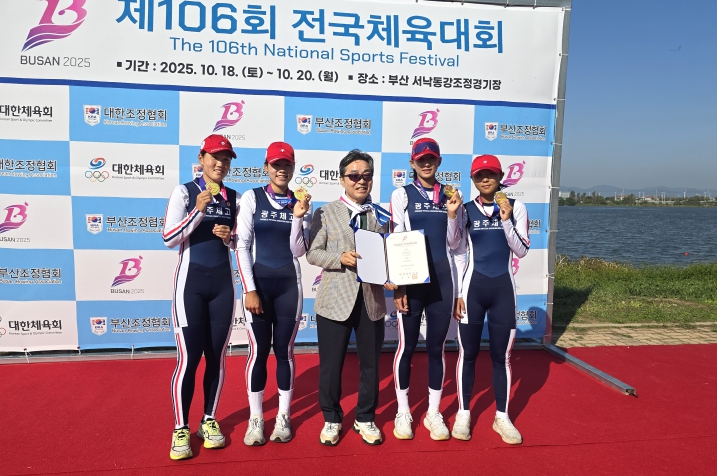 20일 서낙동 조정경기장에서 열린 조정 18세이하부 쿼드러플스컬 경기에 참가한 광주체고 조정팀(김지선3, 노효림1, 배지영1, 천지민1)이 7분9초69를 기록하며 우승을 차지했다. 104회 전국체전부터 이 종목에서 우승을 차지한 광주체고는 3연패 대기록을 달성했다.