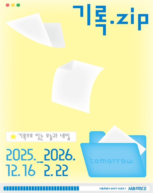 먼저 서울책보고는 12월 16일부터 내년 2월 22일까지 ‘형형색책(形形色册)’ 네 번째 시리즈 '기록.zip : 기록으로 잇는 오늘과 내일'을 개최한다. 이번 프로그램은 ‘기록’을 대주제로 삼아, 지나온 시간을 회고하고 다가올 내일을 준비하는 다양한 전시와 행사로 구성됐다.