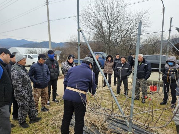 특히 이론 교육에 그치지 않고 옥과면과 겸면 일원 사과 다축 재배 포장 4개소를 직접 방문해, 수세 상태에 따른 전정 요령, 가지 배치, 수형 안정화 등 농가별 여건에 맞춘 현장 중심의 맞춤형 지도가 이루어졌다.