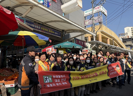 특히 화재피난약자를 위한 ‘119 화재안심콜 서비스’ 등록 확대에 따라 시장 방문객을 대상으로 현장 홍보를 실시하고, 배너 설치와 함께 홍보물을 배부해 서비스 이용을 독려했다. 119 화재안심콜 서비스는 화재 발생 시 구조대원이 사전에 등록된 정보를 활용해 신속하고 맞춤형 대응이 가능하도록 돕는 제도다.