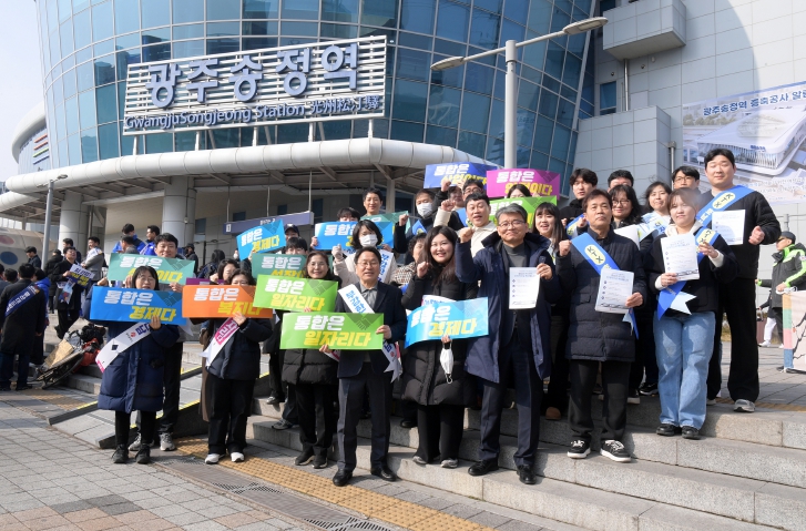 이날 캠페인에는 강기정 시장과 공직자 20여명이 참여했다. 공직자들은 현장에서 시민에게 KTX 호남선 단계별 증편 정보와 행정통합 정보를 담은 홍보 전단지를 건넸다. 또한 행정통합에 대한 의견을 온라인으로 제출할 수 있는 광주시 누리집 ‘온라인 시민소통플랫폼’도 함께 안내했다.