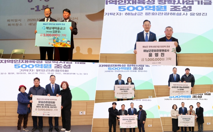 한편, 해남군 장학사업기금은 현재 235억 8,000만원이 조성됐으며, 군은 2030년까지 500억원 조성을 목표로 지속적인 기탁 참여를 통해 기금 확충에 힘쓰고 있다.