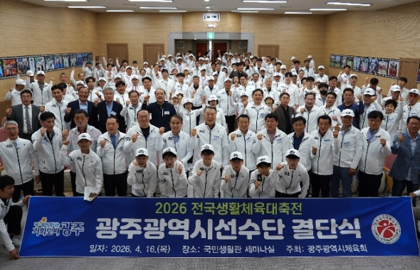 [더조은뉴스]광주광역시체육회(회장 전갑수)가 16일 오후 국민생활관 세미나실에서 ‘전국생활체육대축전’에 참가하는 선수단의 선전을 기원하는 결단식을 개최했다. 이날 결단식에는 전갑수…